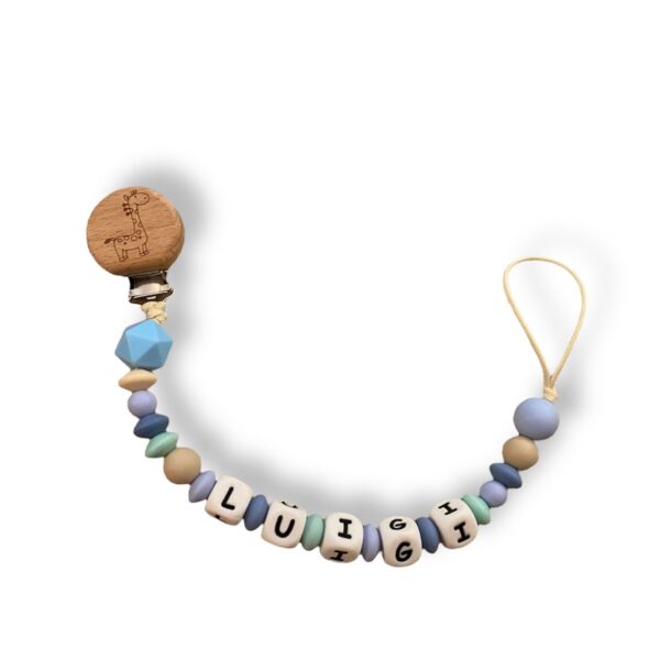 📐 PERSONALIZZAZIONE: La catenella portaciuccio personalizzata può avere una lunghezza del nome max 12 lettere e non esistono lettere accentate. Il prezzo standard è riferito ad un nome di 7 lettere, per ogni lettera aggiuntiva è prevista l’aggiunta di un euro. E’ possibile scegliere la combinazione dei colori tra i toni dell’azzurro ed i toni del rosa.