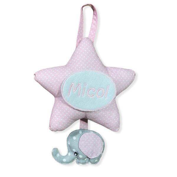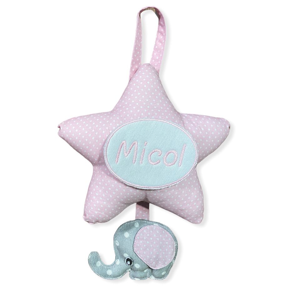 Fiocco nascita bimba o bimba a forma di stella con elefantino pendente