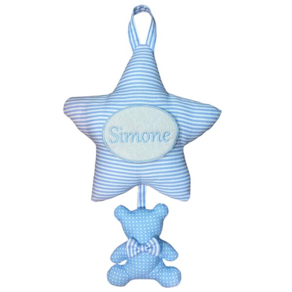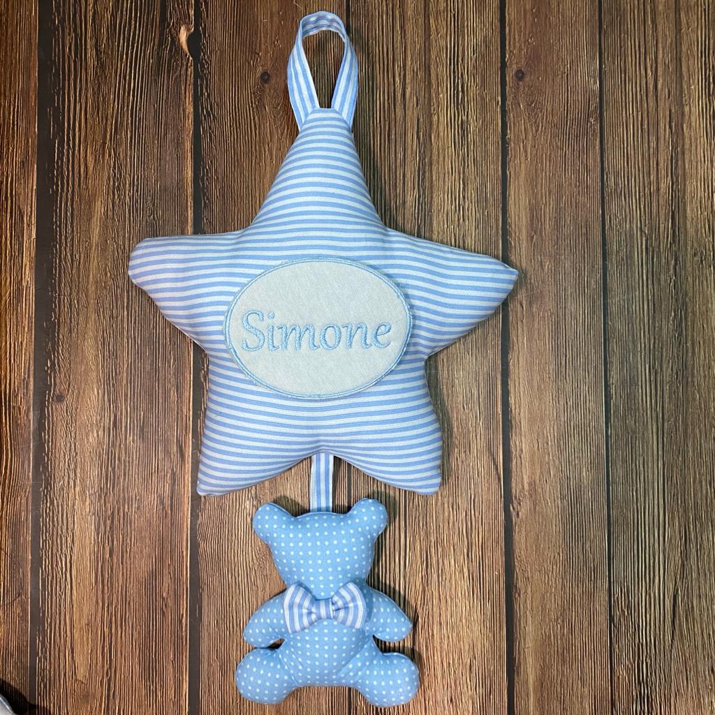 Fiocco nascita azzurro rosa a forma di stella con orsetto pendente – Coccarda nascita con nome personalizzato – Fiocco nascita bimbo con orsetto pendente