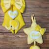 Fiocco nascita giallo – Fiocco nascita neutro bimba o bimbo – Tema della coccarda nascita elefante – Coccarda nascita con nome personalizzato – Fiocco nascita originale