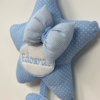 🤲 [FATTO A MANO] Il fiocco nascita Pri Frog è un prodotto artigianale. DESCRIZIONE: Dolce stellina rosa o azzurra con stoffe in cotone di prima qualità e di tonalità tenui con nome personalizzato ricamato con filato rosa o azzurro da richiedere sia per bimbo che per bimba. Le stoffe verranno scelte in combinazioni simili alla foto, colori tenui, una tinta, a righini o a pois. Se desideri un abbinamento specifico scrivici in privato! Fiocco nascita a stella con elefantino, soffice e delicato disponibile per bimba e per bimbo. Decorazione adatta anche per decorare la cameretta realizzata in cotone rosa chiaro o con tessuto azzurro tenue.