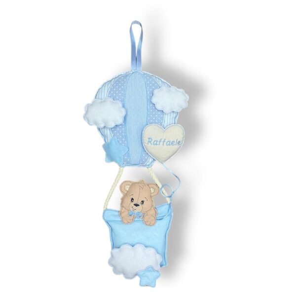Fiocco nascita mongolfiera – Coccarda nascita bimba bimbo con nome personalizzato – Fiocco nascita mongolfiera con orsetto e nome – Pri Frog Fatto a mano