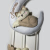 - PERSONALIZZAZIONE: È possibile personalizzare il fiocco (max 15 caratteri) con una frase oppure con il nome del neonato (maschio o femmina) che viene ricamato nella soffice luna bianca con i toni del tortora.