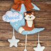 Fiocco nascita volpe – Fiocco nascita bimba bimbo – Coccarda nascita luna e stelle a tema volpe – Coccarda nascita con nome personalizzato – Fiocco nascita originale