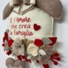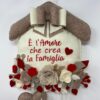 🧵PERSONALIZZAZIONE : Il fuori porta a forma di casetta presenta la frase ” E’ l’amore che crea la famiglia “. Ma è possibile aggiungere il nome ( max 10 caratteri) di ogni componente della famiglia sui cuoricini pendenti.