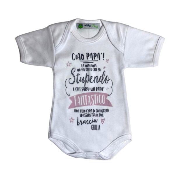✂ [PERSONALIZZAZIONE] Il body neonato è una simpatica idea regalo per la festa del papà e viene arricchito dal nome personalizzato della bimba/bimbo. Il colore delle scritte è nero + dettagli in rosa/azzurro.