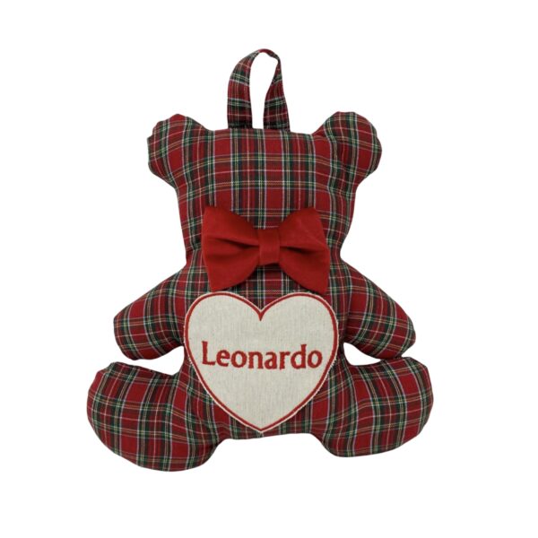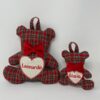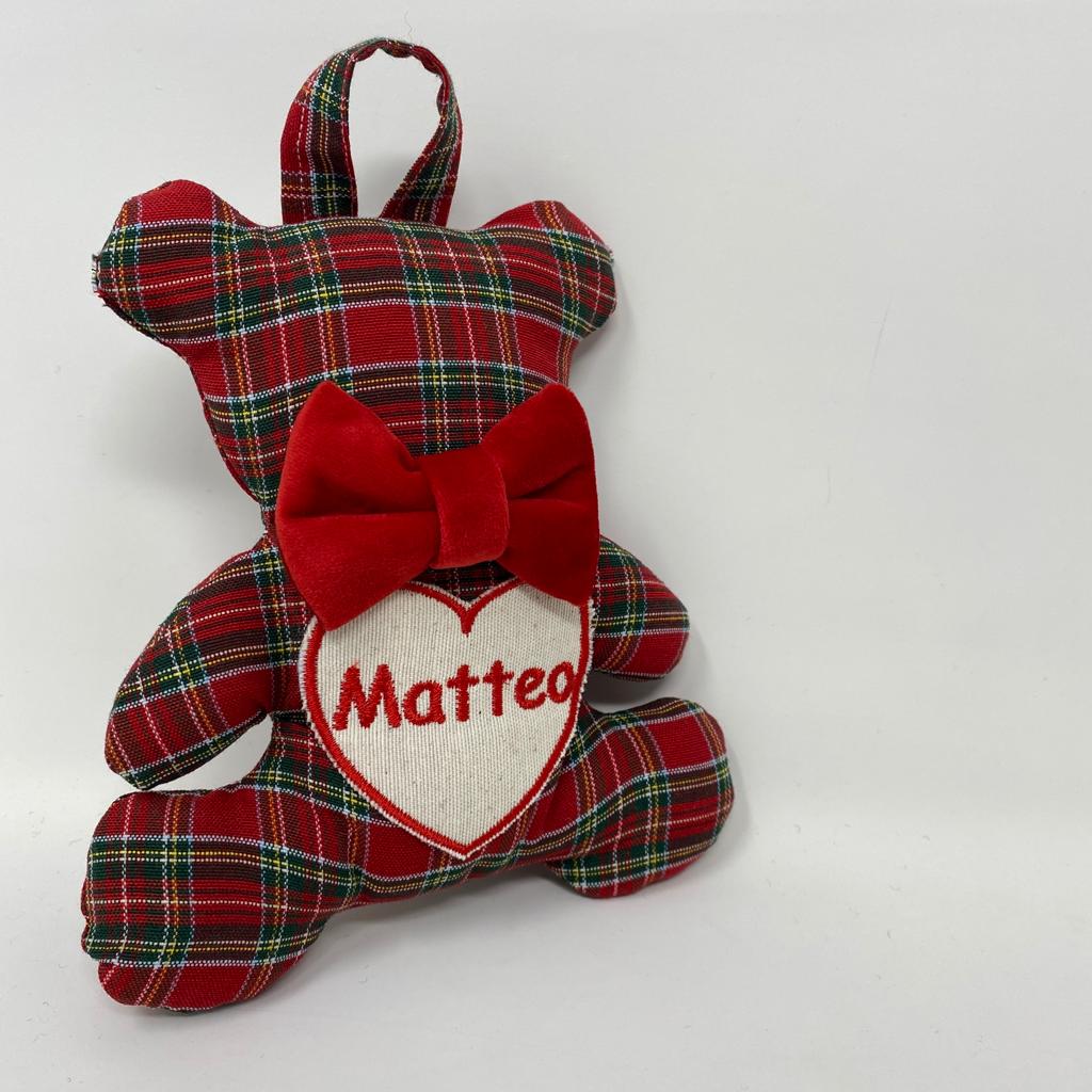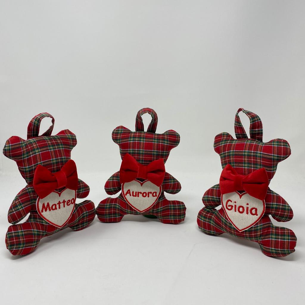- DESCRIZIONE: Dolce orsetto decorazione natalizia in Tartan con nome personalizzato ricamato con filato rosso da richiedere sia per bimbo che per bimba. Da utilizzare come decorazione per albero di natale, come decorazione per la cameretta o ricordo del primo natale insieme. Regalo per neonati, orsetto in tartan soffice e delicato disponibile per bimba e per bimbo.