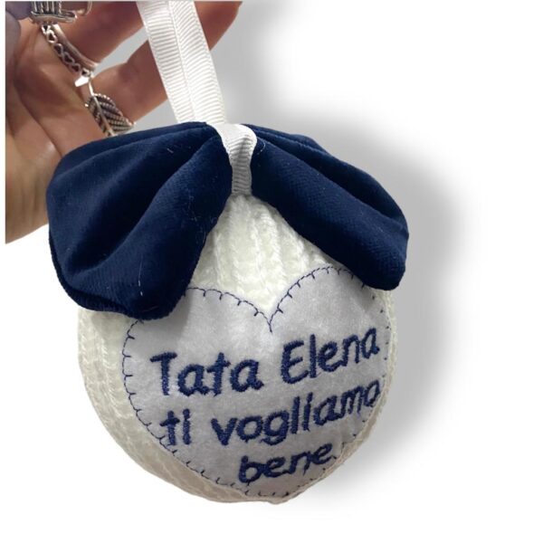 Palline di Natale con nome – Pallina natalizia con frase – Palline di natale con decori blu – Decorazione albero di natale con nome – Pallina in lana per albero di Natale – Idea regalo