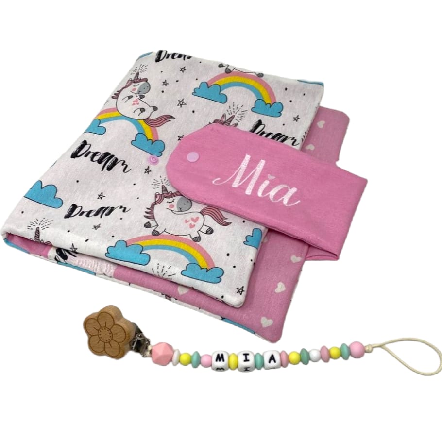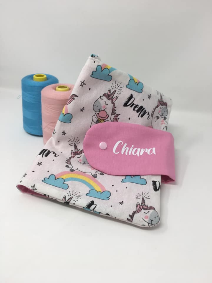 Porta salviette da borsa – Porta pannolini da viaggio – Organizer con nome personalizzato – Porta pannolini Tema unicorno