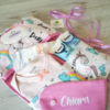 ✂ [PERSONALIZZAZIONE] È possibile personalizzare il fiocco (max 15 caratteri) con una frase oppure con il nome del neonato (maschio o femmina) che viene ricamato sulla soffice nuvoletta bianca con filato rosa o azzurro. Le stoffe vengono scelte simili a quelle in foto.