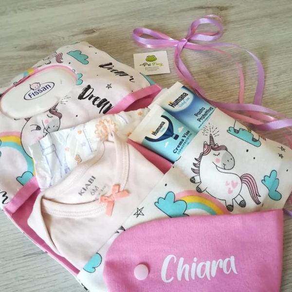 Porta pannolini da borsa – Organizer con nome personalizzato – Tema unicorno