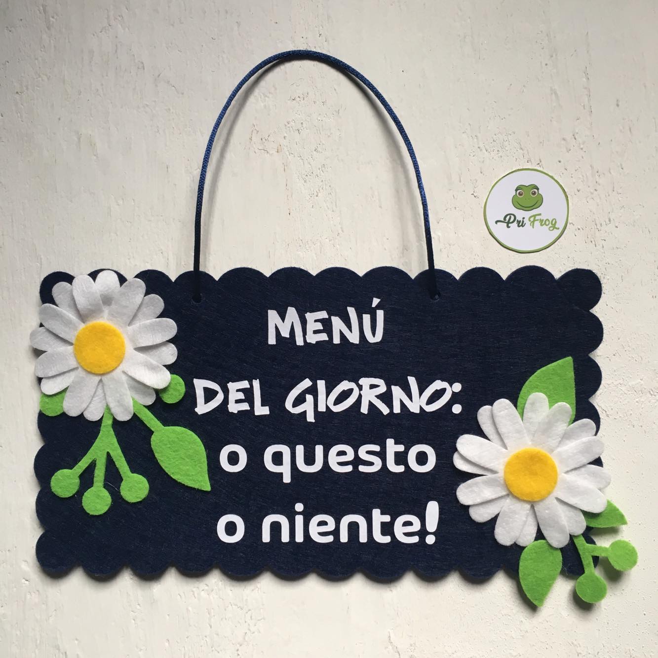 Targhetta artigianale – Fuoriporta in feltro – Dietro porta con scritta “Menù di oggi: o questo o niente!” –