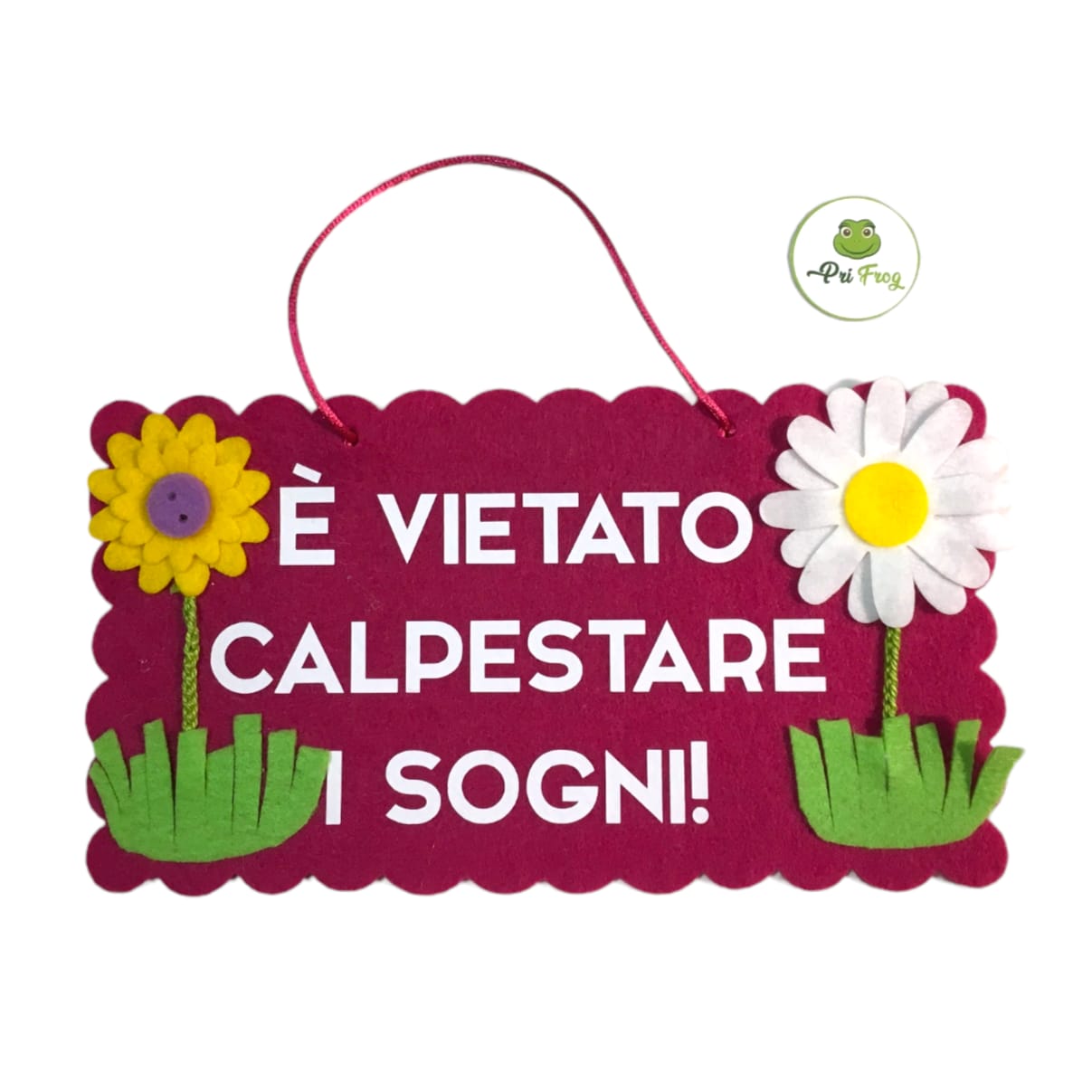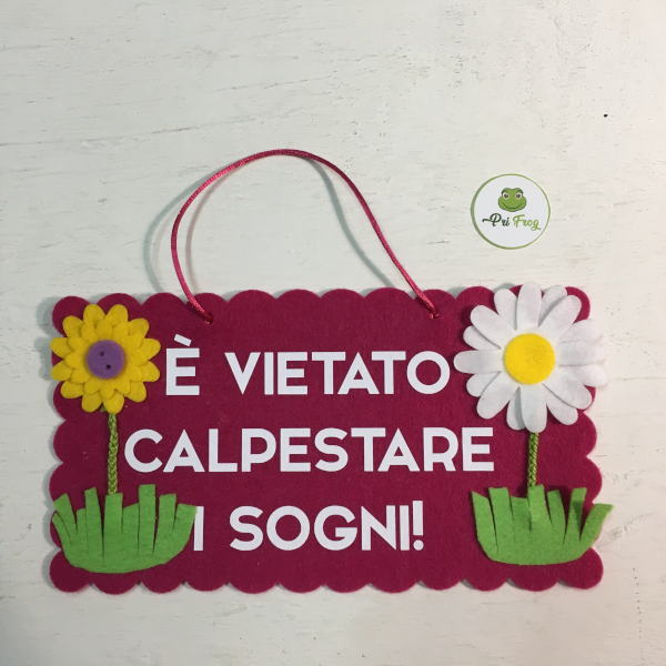 Targhetta artigianale – fuoriporta in feltro – dietro porta con scritta: “Vietato calpestare i sogni”-